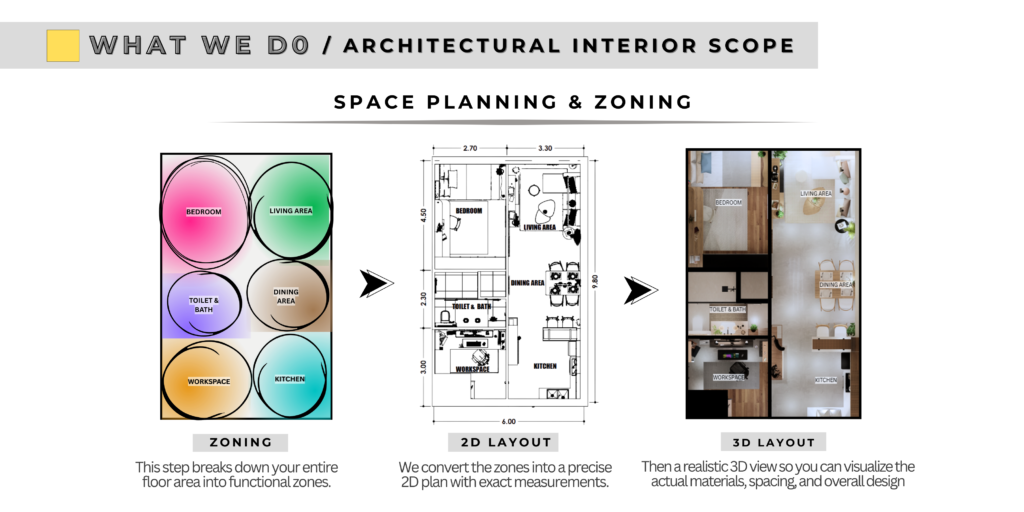 A team of dedicated design professionals specializes in creating interior designs, tailored to meet the specific needs of each client. Whether you’re renovating a home or an apartment, we bring creativity, precision, and keen eye for detail to every project.